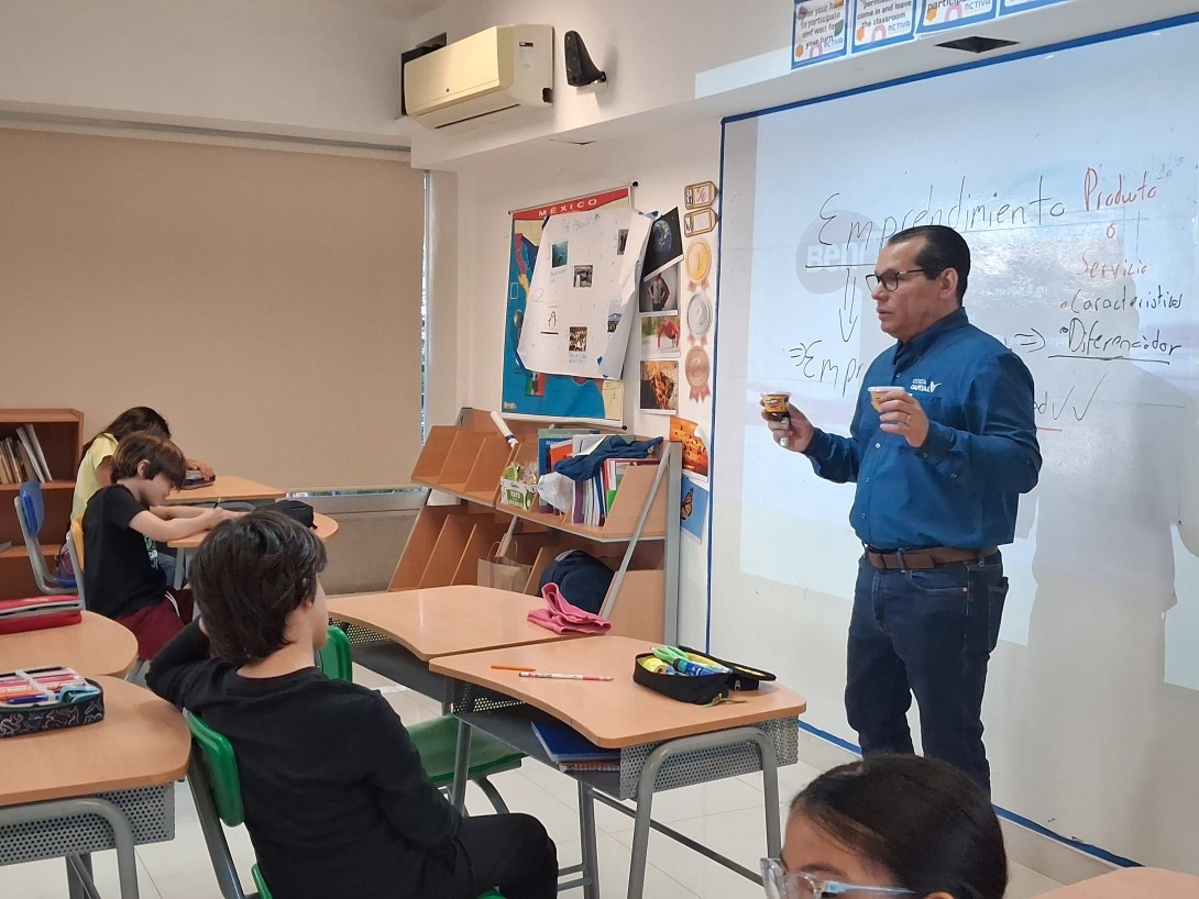 Los alumnos de 4°P, como parte del proyecto “El Pequeño Empresario”, vivieron una experiencia muy enriquecedora al recibir una charla sobre Emprendimiento, impartida por el Papá Activo, Luis Flores.